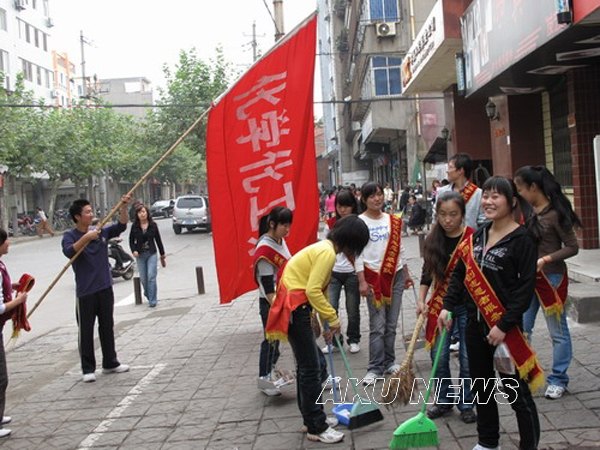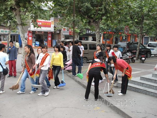 国庆来临之际,我院各院系纷纷组织双创志愿者走上街头进行双创宣传和义务大清扫。 志愿者们携带清洁工具走上南环路、大桥路、育才路,进行义务大清扫。他们对临街门店的车辆停放、野广告、出店经营进行纠正和处理,对人行道路面进行打扫;入店对各临街商户的“门前四包”、“六小行业”等进行“双创”宣传,为打造一个干净整洁的城区环境、喜迎国庆、欢迎四方宾客积极地营造氛围。
