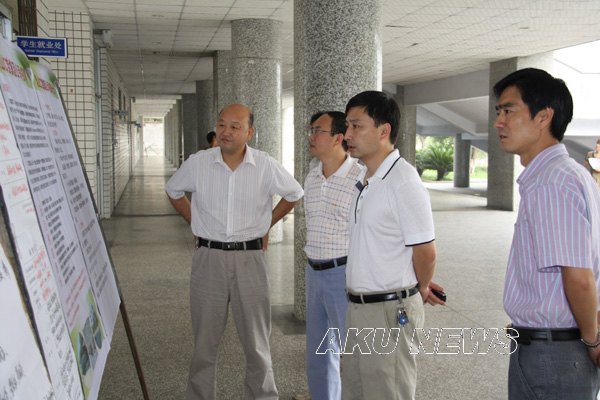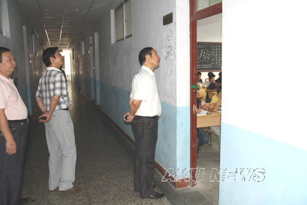 教室外,王兴林院长驻足倾听室内传来的朗朗读书声,并向院系领导询问教师到位、学生到课、后勤保障等情况。在学生就业处和新校区建设指挥部,杨涛书记、杨行玉副院长详细询问了已经启动的08级学生就业工作和新校区征地的前期准备情况,并做出了指示。党委副书记胡鸿晓,党委副书记、纪委书记闵小平分别到西校区和东区南院,对相关院系的教学情况进行了深入了解。杨行玉副院长还来到基建工地,检查了在建的工程项目,对建设工程的质量和进度提出了要求。