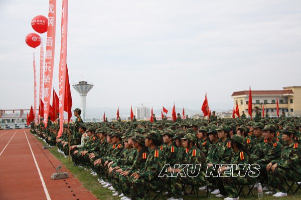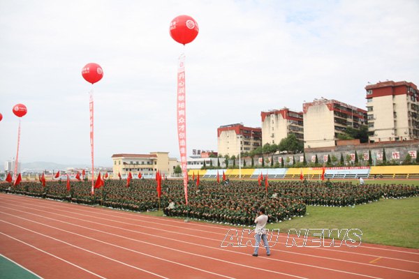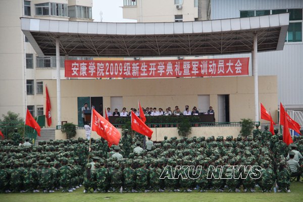 金色九月,秋风送爽。合着新学年的快乐,迈着轻盈的步伐,在这个收获的季节和美丽祥和的日子里,我院2009级新生开学典礼暨军训动员大会于9月15日下午在东校区体育场隆重举行。学院党委书记杨涛,院长王兴林,党委副书记胡鸿晓,党委副书记、纪委书记闵小平,副院长杨行玉,副院长向纪明以及相关部门负责人、各院系主任,武警安康市支队教导队大队长徐信军,教导员祁乾周在主席台就坐,2009级新生及各院系负责军训的辅导员、承训部队教官出席了大会。大会由杨行玉主持。