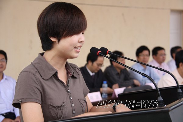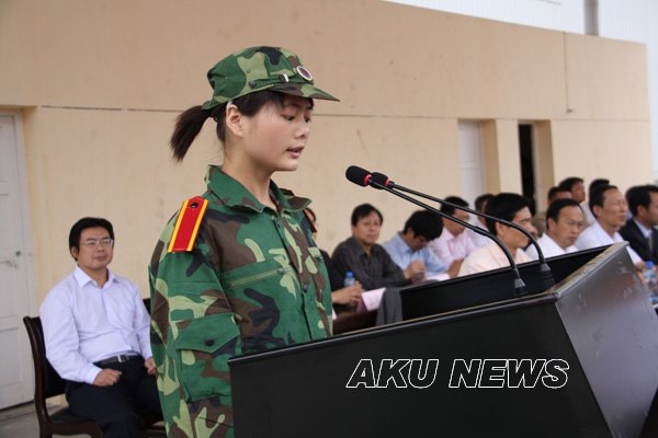 农学与生命科学院王建博士、外语系09级英语教育专业佘小燕、中文系08级汉语言教育本科胡敏分别代表师生发言。武警安康市支队教导队大队长徐信军代表承训部队发言。