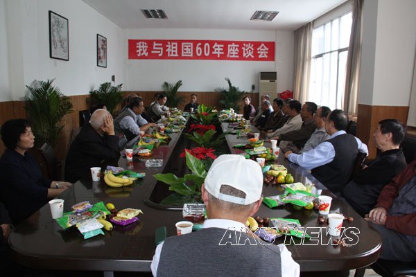 同日,学院离退休老同志组织了“我与祖国60年座谈会”。这些老同志们亲身经历了国家的发展变化,参与了学校的建设和发展,他们对党、对国家、对学校怀有深厚感情。他们用自身经历,热情赞颂在中国共产党领导下,新中国60年来发生的巨大变化和取得的辉煌成就。离退休老同志黄玉还做诗词两首,表达大家的兴奋之情和爱国之心。“祥云瑞气满神州,红旗飞舞凯歌奏。六十华诞迎国庆,亿万人民喜心头。国运昌隆灿似锦,改革开放真良谋,科学发展心向党,风光无限在前头。”“举国竟欢腾,极目望九州,敢问中华大地,何时最风流?飞船遨游太空,奥运北京圆梦,佳话时时有。 江山美如画,喜年丰人寿。正清秋,枫叶红,金桂香。经济腾飞,百业千行齐兴旺。普天同庆华诞,龙腾虎跃争光,‘四化’谱新章。要高歌猛进,捷报频传唱。”