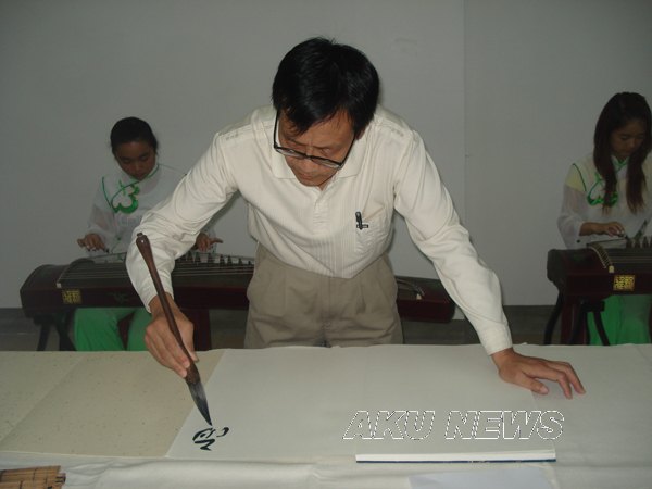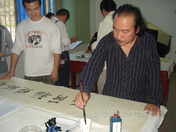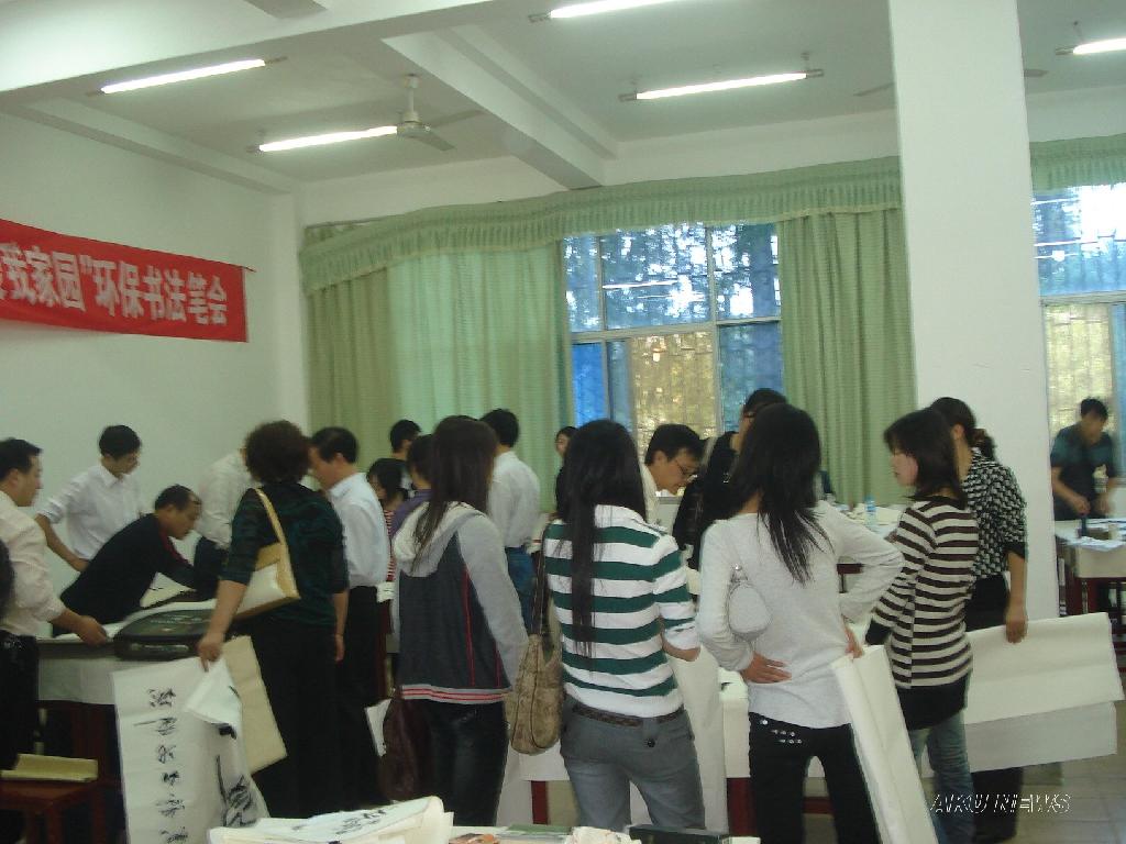 在即将迎来新中国成立60周年之际,由安康市环保局和我院艺术系、安康市书法协会联合主办的庆祝新中国成立60周年“保护环境、爱我家园”环保书法笔会活动,9月25日在我院西校区艺术楼举行。我院艺术系师生、市人大常委会机关、市直环保系统干部职工近百人参加活动。