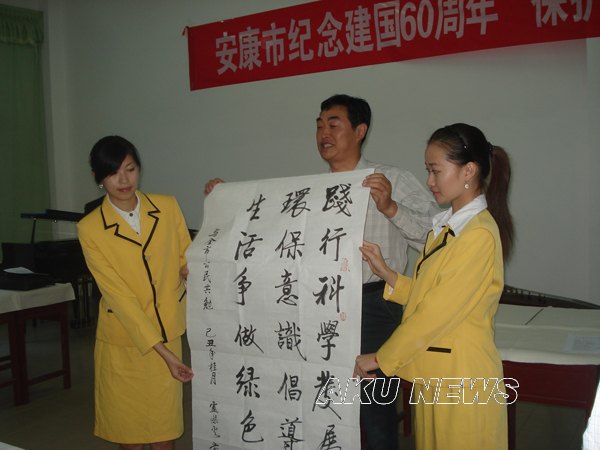 安康市庆祝新中国成立60周年“保护环境、爱我家园”环保书法笔会在我院举行