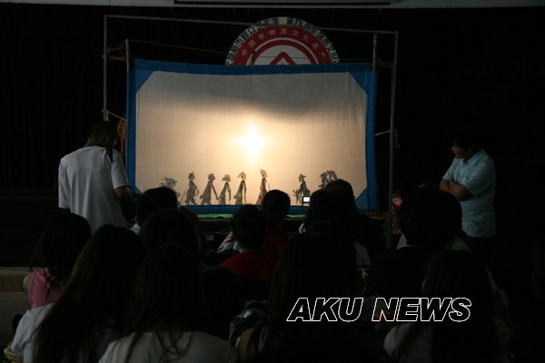 我市民间皮影艺术家陈昌珍,民间泥塑艺术家陈继武为大学生展示了各自的绝活,并对皮影和泥塑的制作进行了详细讲解。同学们也上台亲自操作,亲身感受民间文化艺术的魅力。