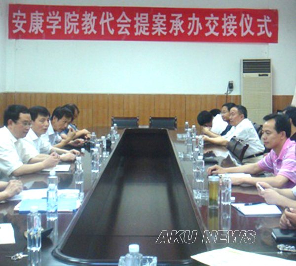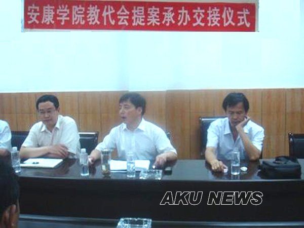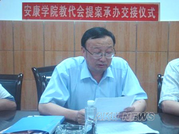 提案工作小组组长、监察处处长王新民受提案工作小组委托向大家介绍了上次教代会提案办理情况和本次教代会提案总体情况,提出了继续做好提案办理工作的具体意见,宣布了提案承办单位和督办领导。随后与学院办公室、人?处、教务处等五个承办部门和单位履行了交接手续。