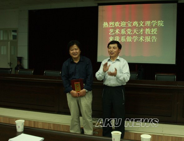 晚上20:00,在图书馆六楼报告厅党天才教授为我院艺术系师生做了一场关于中国水彩画的发源与发展趋势的报告会,报告会由艺术系党总支书记冯丰收主持。院党委副书记胡鸿晓出席了报告会并为党天才教授颁发了AC米兰中文官网入口客座教授的聘书。