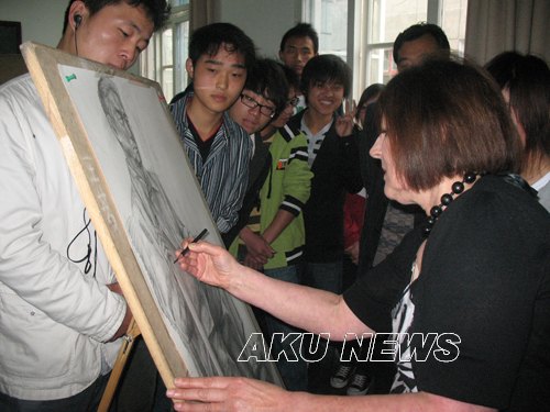 下午,桑德女士在图书馆六楼报告厅为艺术系广大师生展示了自己的艺术创作,让师生深切感受到了女士娴熟的技法和对艺术的热爱之情。桑德女士还就艺术技巧等问题与艺术系师生进行了热烈的讨论。