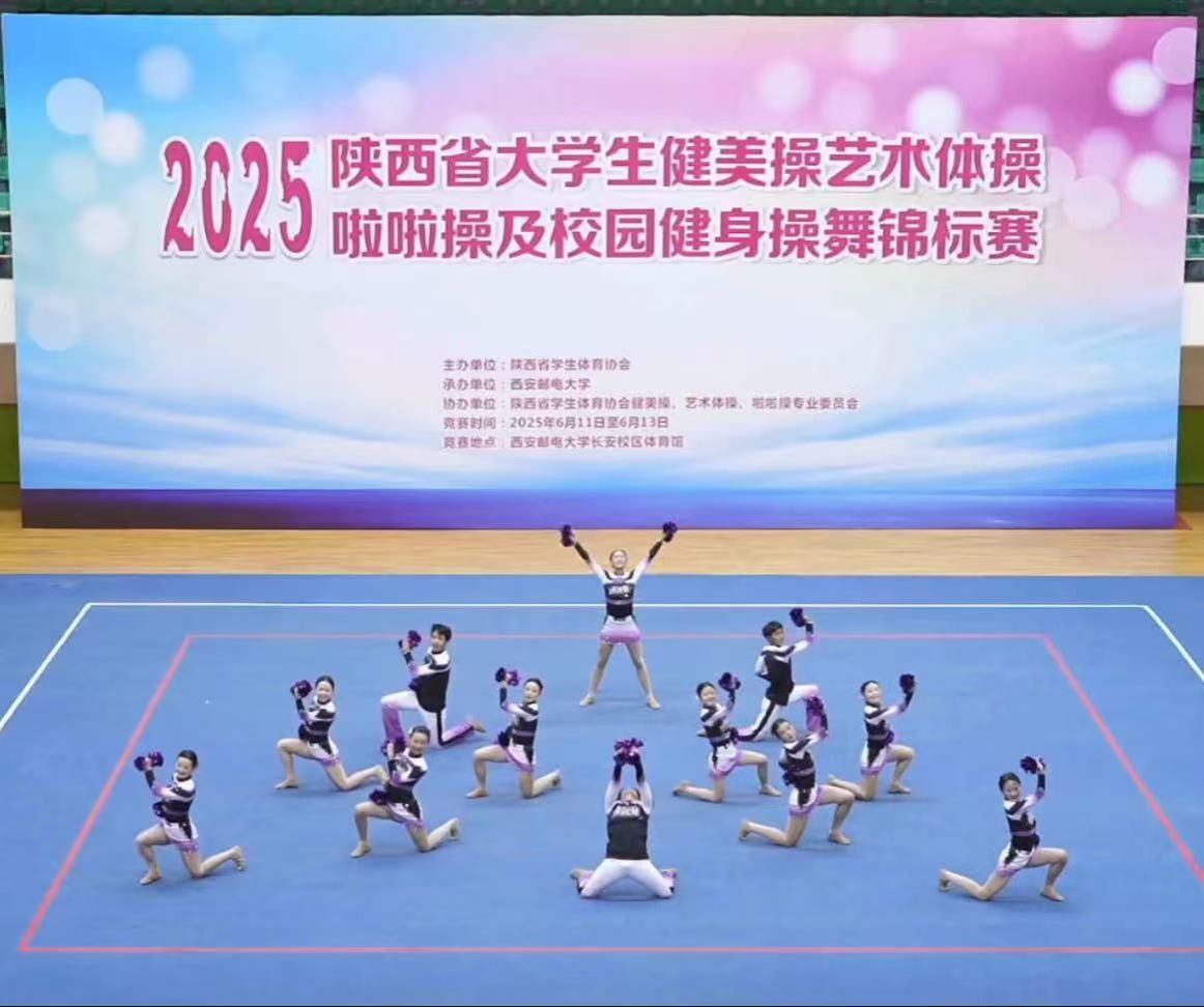 6月12日,由陕西省学生体育协会主办、西安邮电大学承办的2025年陕西省大学生健美操、艺术体操、啦啦操及校园健身操舞锦标赛在西安邮电大学(长安校区)体育馆圆满落幕,AC米兰代表队斩获乙组啦啦操团体总分第一名。