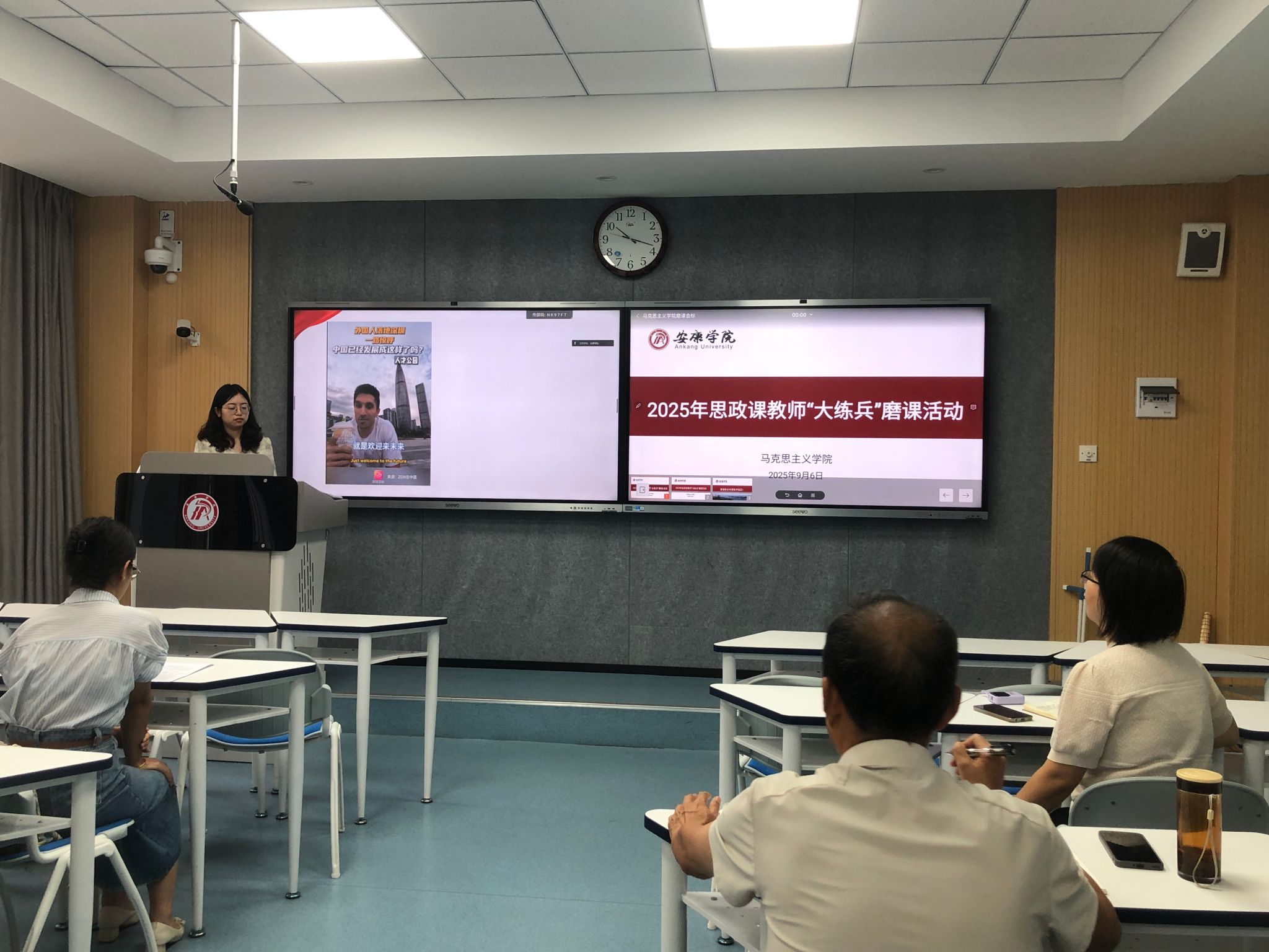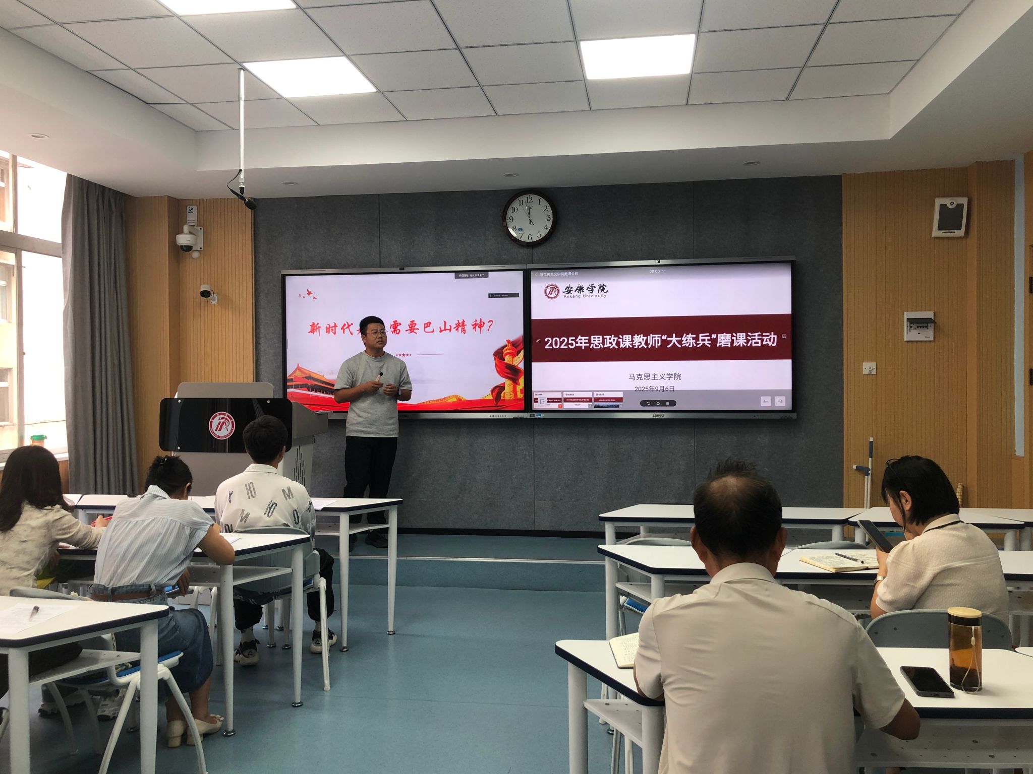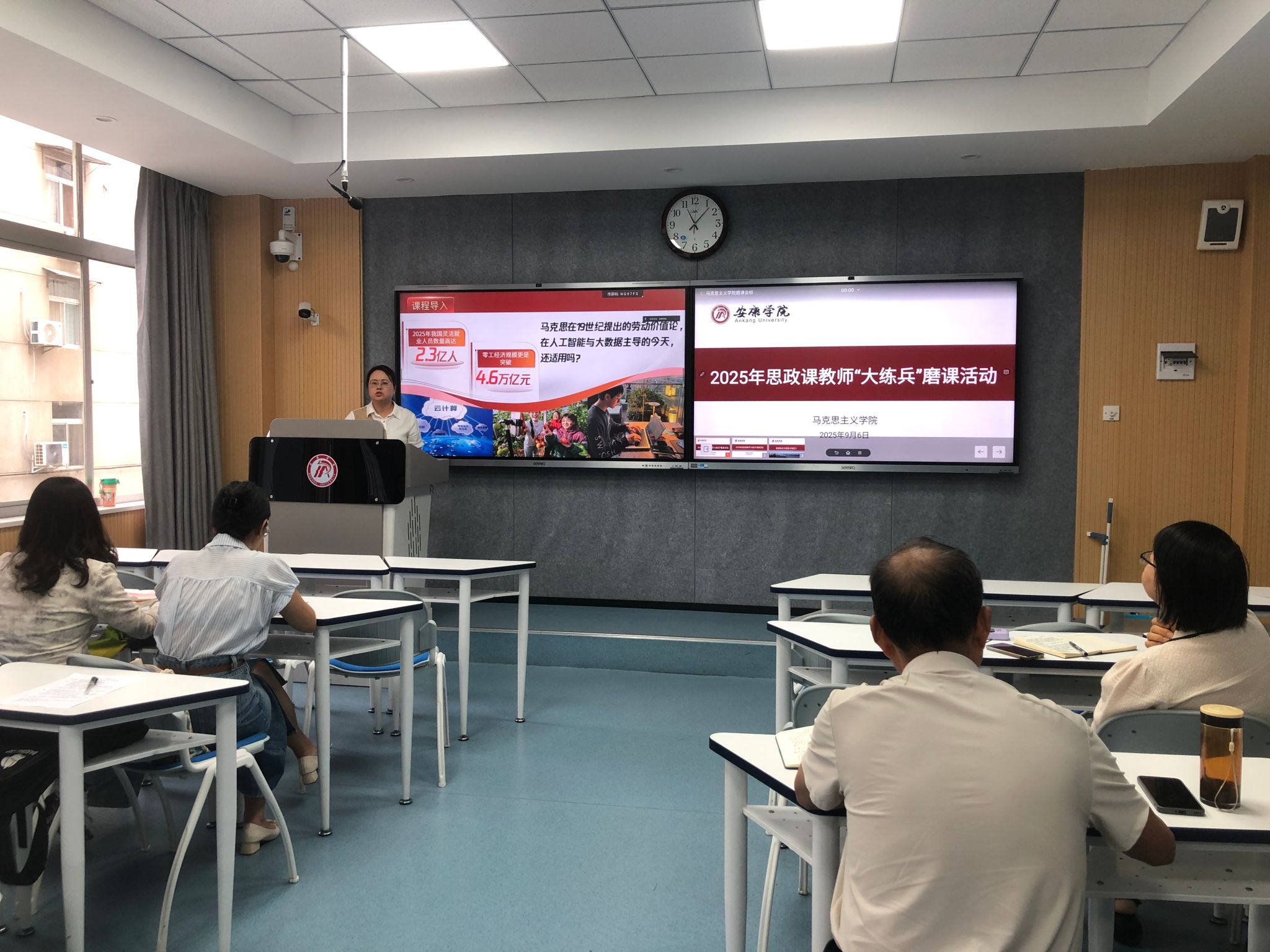 为全面提升AC米兰思政课教师教学能力,扎实做好“大练兵”备赛工作,9月6日上午,马克思主义学院在江南校区1205教室组织开展了新一轮思政课教师“大练兵”磨课活动。本次活动采取线上线下相结合的方式,由马克思主义学院副院长王晓霞主持。