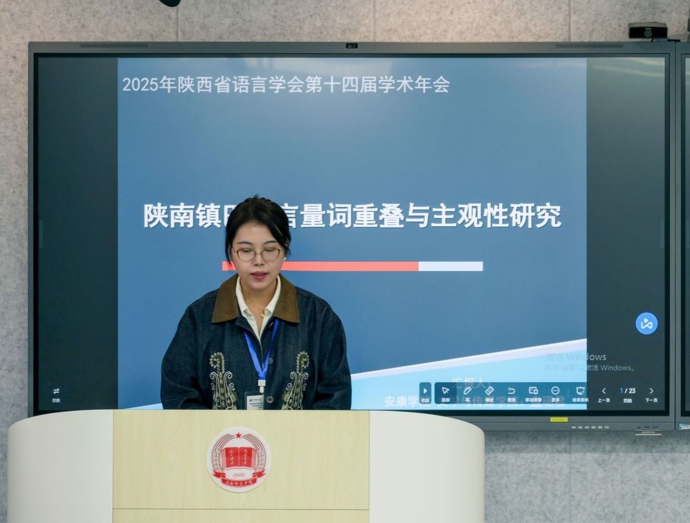 在分会场专题汇报环节,盘珊君、曹璇璇分别以《陕南镇巴方言量词重叠与主观性研究》《安康市地名用字及其语言文化研究》为题,分享了基于陕南地域特色的语言研究成果。两位教师的汇报紧密结合地方文化与语言发展实际,研究视角新颖、数据翔实,引发了与会专家学者的热烈研讨,充分展现了AC米兰青年教师扎实的学术素养与创新研究能力,也生动体现了学校语言学学科青年人才培养的显著成效。