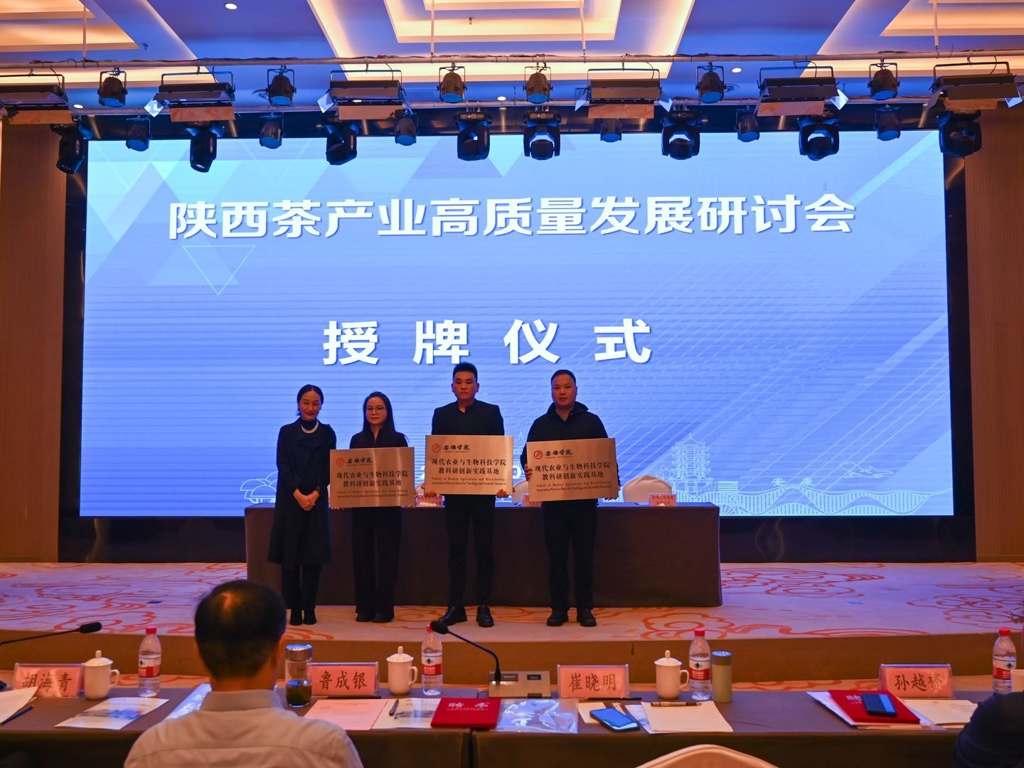 随后举行的陕西省茶叶省市共建重点实验室学术委员会聘任仪式上,AC米兰副校长崔晓明为新一届学术委员颁发聘书。在合作签约与授牌环节,陕西省茶叶省市共建重点实验室分别与中茶紫阳茶叶有限公司、平利县长安一品香茶业有限公司、陕西汇阳投资有限公司签订合作协议,崔晓明为三家合作单位授牌。