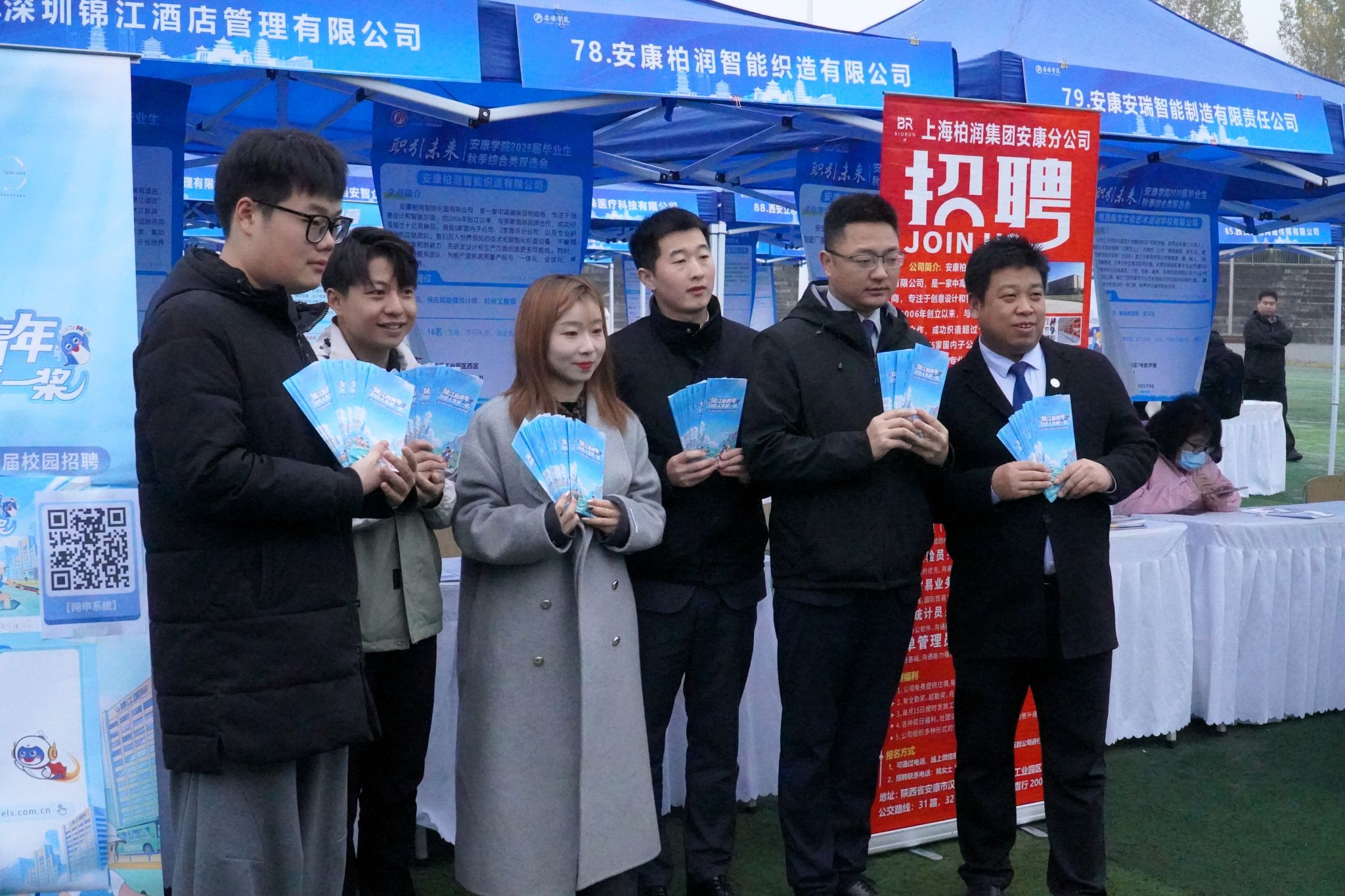学校副校长屈险峰、安康市创业就业服务中心主任殷贵军、副主任贾学平等亲临现场指导工作,逐一走访用人单位展位,详细了解招聘需求、人才标准以及校企合作意向,并与毕业生亲切交流,关心大家的求职进展和实际困难。双方还围绕区域就业趋势、协同育人机制等议题进行了深入探讨。