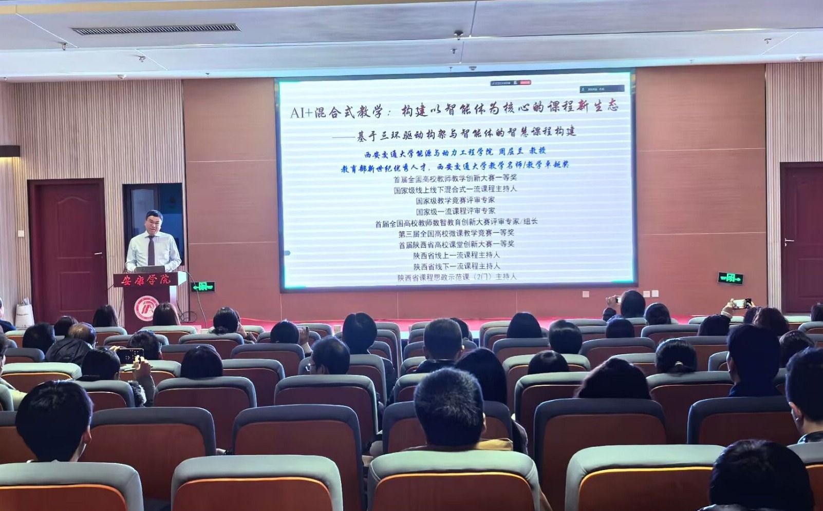 西安交通大学周屈兰以《AI+混合式教学:构建以智能体为核心的课程新生态》为题作专题分享。他首先解读国家教育数字化战略及教师数字素养标准,明确智慧课程建设的核心要素与方向;随后针对传统终结性评价模型的局限,创新提出“AI赋能的全流程教学模型”和“智慧课程的三环驱动模型”,系统梳理“预学—精讲—拓研”混合式教学组织流程;最后结合自建“燃烧学”智慧课程,从课程体系设计、AI技术融合路径、教学效果评估等维度,全面呈现智慧课程建设全流程与实践成果,为参训教师提供了可借鉴的范本。互动答疑环节,周屈兰针对教师们提出的智慧课程设计难点逐一解答,助力教师精准掌握智慧课程设计的核心逻辑与关键要点。