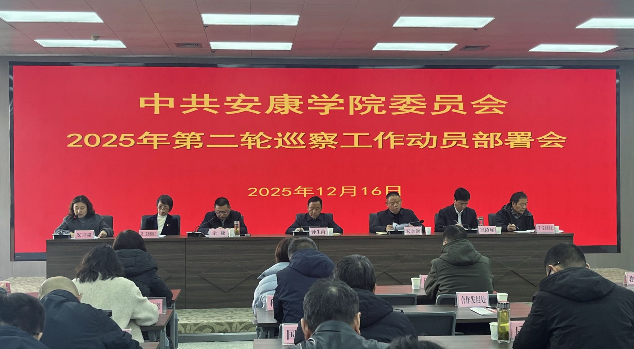 12月16日下午,学校党委召开2025年第二轮巡察工作动员部署会,正式启动本轮校内巡察工作。校领导班子成员,党委巡察工作领导小组成员单位负责人,被巡察二级党组织主要领导班子成员,各二级学院党总支书记、直属党支部书记,党委巡察组及巡察办相关成员参加会议。学校党委巡察工作领导小组组长、党委书记钟生海出席会议并作动员讲话。会议由党委副书记余谦主持。