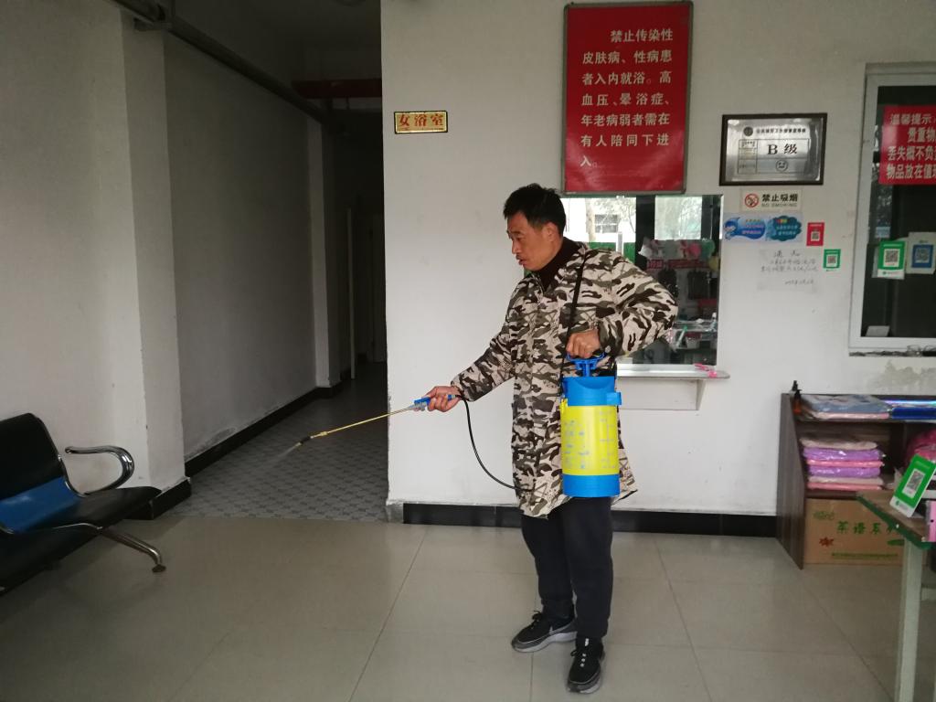 给浴室入口场所消毒